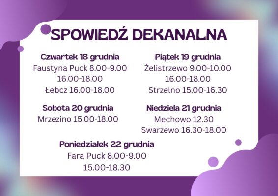 W czasie przygotowania do świąt zachęcamy do skorzystania z sakramentu pokuty i pojednania. To szczególny [...]