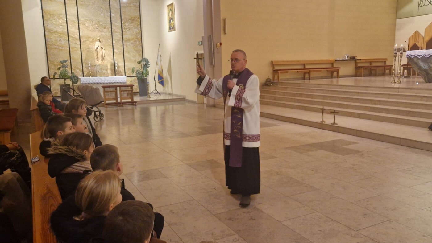 Na godzinę 17.00 Ksiądz Krzysztof zaprosił dzieci. Najmłodsi z wielkim zaangażowaniem odpowiadali na pytania, wspólnie się modlili, a także uczyli się nowych i ważnych rzeczy o naszej wierze. Cieszymy się z ich obecności i otwartych serc.