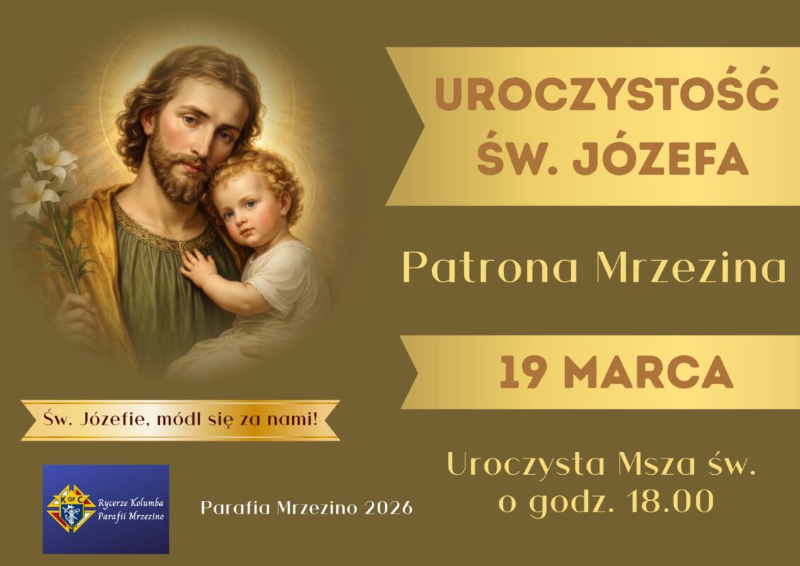 Serdecznie zapraszamy Parafian, a w szczególności mieszkańców Mrzezina na uroczystą Mszę Świętą o godz. 18:00, która będzie sprawowana w ich intencji oraz Rycerzy Kolumba.